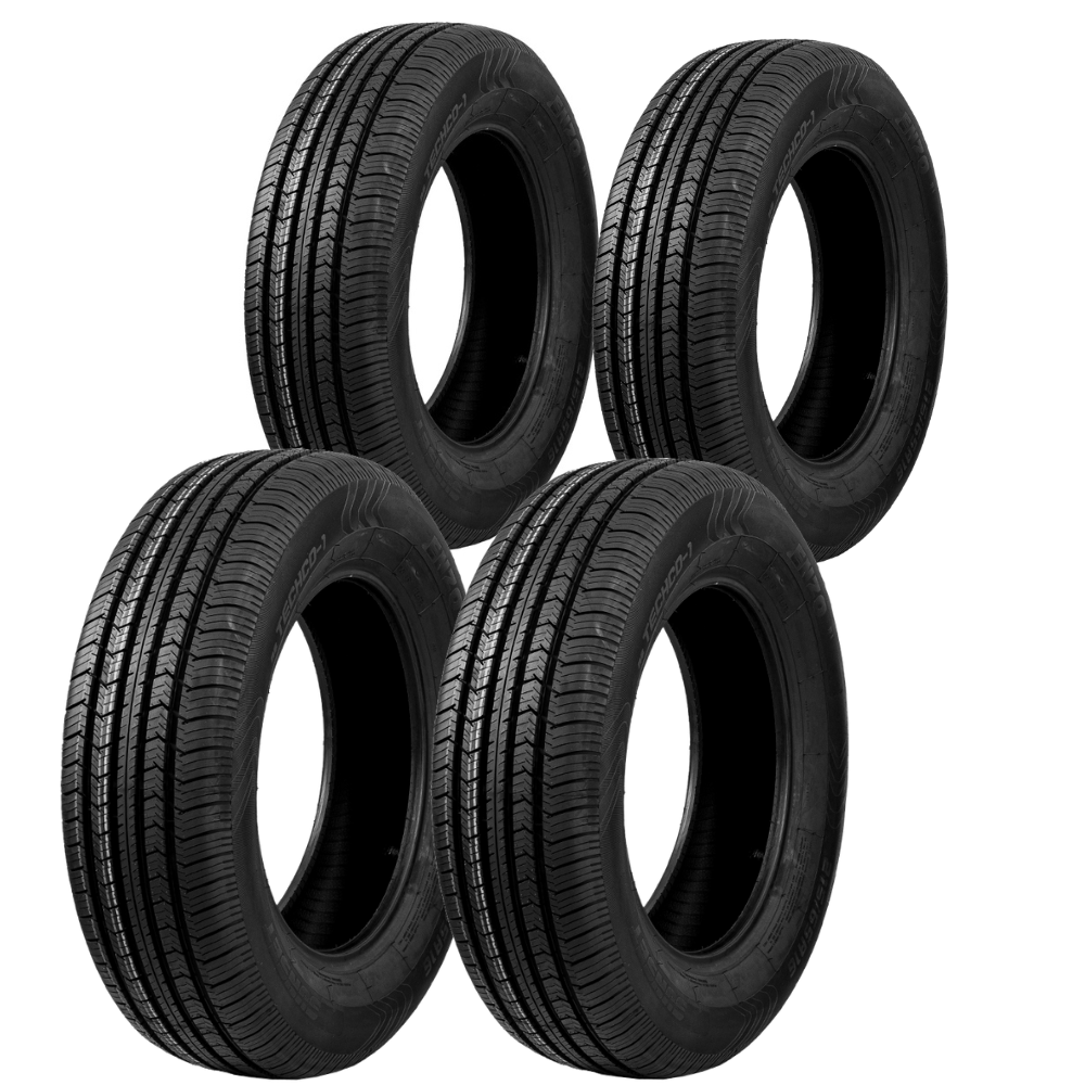 1 - Radial: São os melhores e mais modernos pneus do mercado. Possuem maior eficiência em termos de consumo de combustível, estabilidade, resistência contra perfuração e ao desgate. A designação “radial” refere-se à estrutura do pneu, que segue o sentido de raio da circunferência, e na banda de rodagem são compostos de cintas de aço e outros materiais (dependendo do tipo de pneu). Os pneus radiais compõem 99,9% dos pneus utilizados em veículos de passeio, pick-ups, SUVs e vans. Para identificar o tipo de pneu, confira a letra que vem descrita antes do aro (exemplo: 175/70R13), os pneus radias são representados pela letra “R".